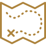 Gold map with dotted lines to an X that marks the spot